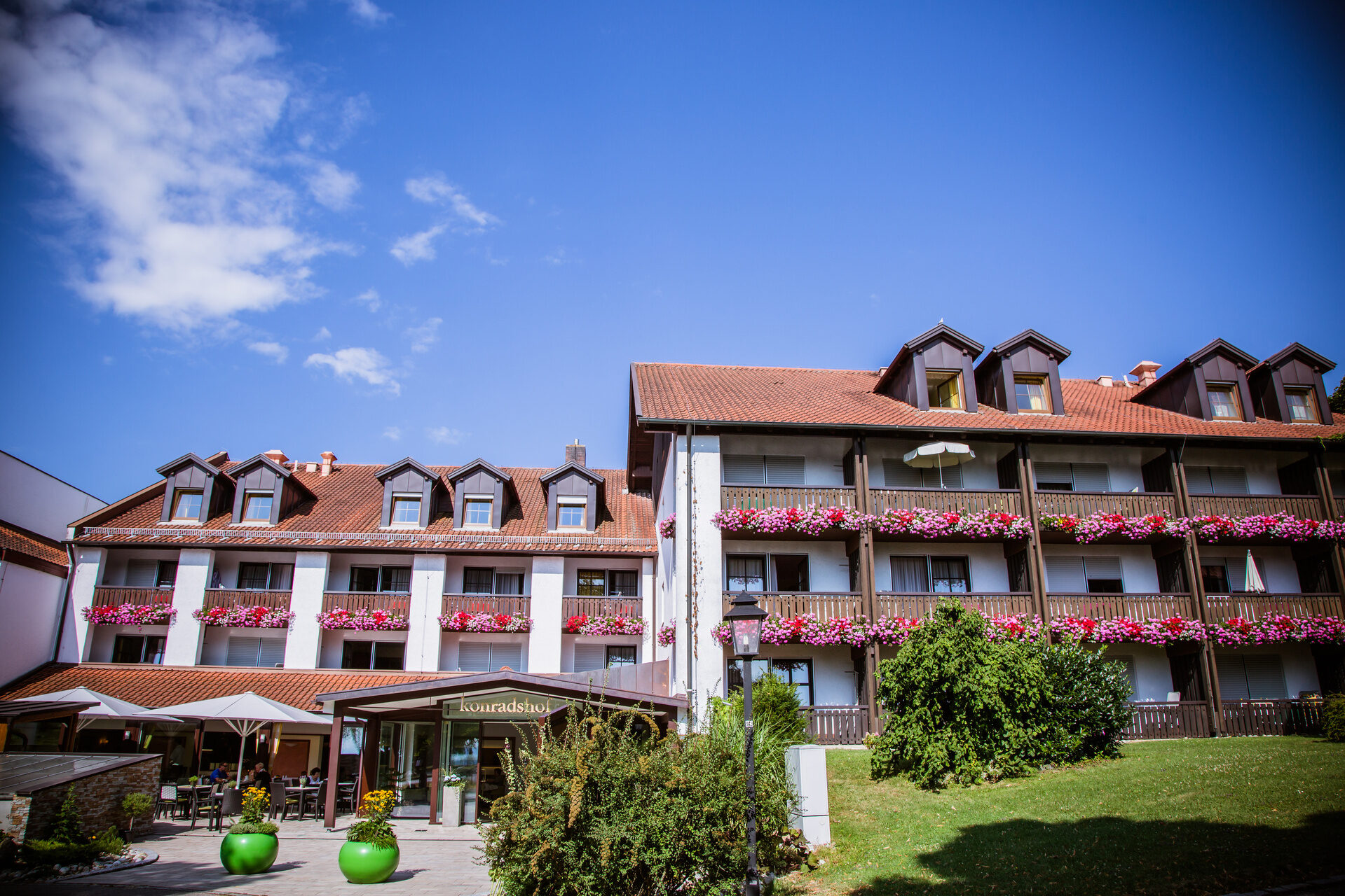 Mitten im Bäderdreieck, umrahmt von den sanften Rottaler Hügeln ist unser Konradshof Zuhause. Mit bester Fernsicht und in direkter Nachbarschaft zum Kurpark. Eine entspannte, ruhige Urlaubsdestination mit viel Gesundheit, Wellness und eigenem Thermalbad - dazu reichlich Genuss und Gemütlichkeit.
