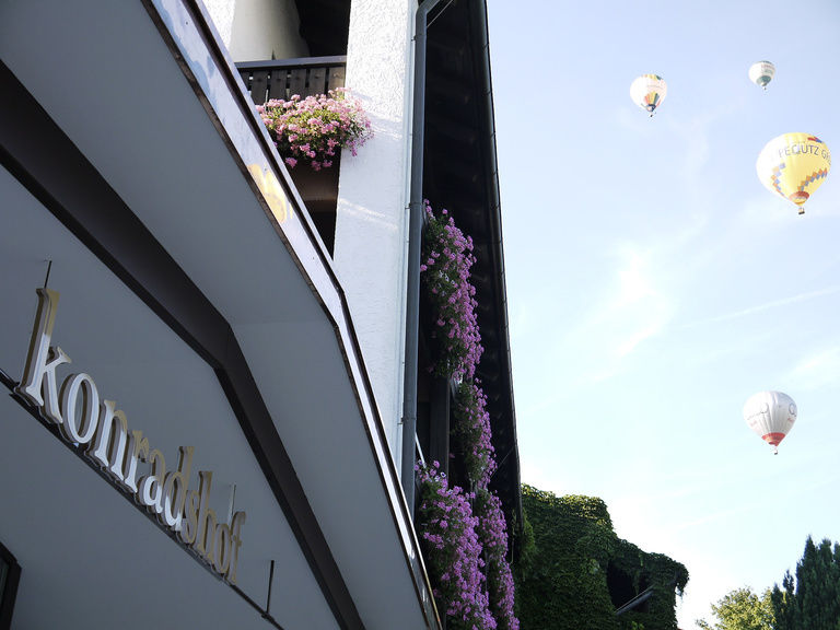 Lautlos schwebt der Ballon über die Rottaler Hügellandschaft. Entspannt kann man zusehen, wie Golfer ihre Runden über die Plätze ziehen, Nordic Walker ihre Stöcke schwingen oder die Besucher in der Wohlfühl-Therme im warmen Wasser liegen. Faszinierend ist der Blick über die niederbayerische Landschaft – bei guter Wetterlage sogar bis zu den Alpen.